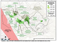 | LBNL Site Map, Groundwater contamination plumes and contaminated soil site |